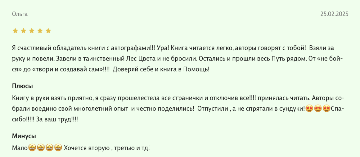 Какое же счастье я испытала, увидев её на маркетплейсе! И уникальнейший продукт интеллектуального труда в моих руках!!! Я с огромным удовольствием прочла книгу, к тому же она, можно сказать, является доказательной базой моего творчества и видения этого мира.